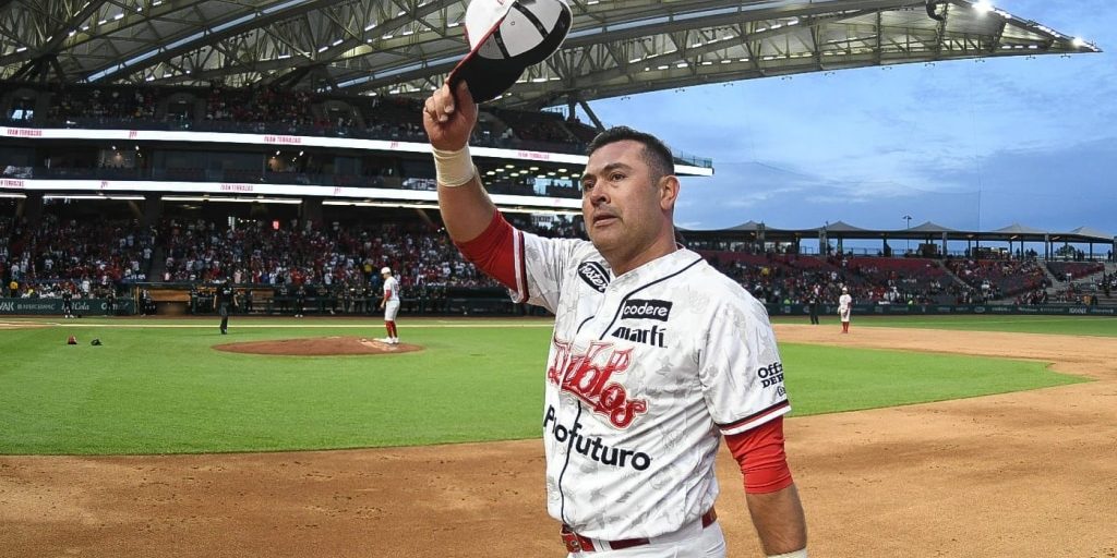 El ya ex pelotero, se despidió del béisbol como jugador, dando un doblete y anotando. Finalmente, la novena escarlata venció 11×9 a los Mariachis de Guadalajara.